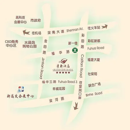Számos Sencsen városi látnivaló, köztük a Sencseni Központi Park csaknem 25 perc sétára van. A Shenzhen Yijing Central Walk továbbá néhány saroknyira helyezkedik el az 5 csillagos hoteltől. A Pingan International Finance Center 2 km-re, valamint a Fumin 750 m-re található a Grand View. A Gangxia Estate buszmegálló hozzávetőlegesen egy 15 perces sétára fekszik.
